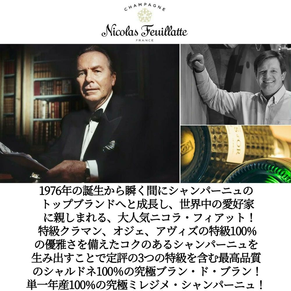 他の画像を見る 【箱入り】ニコラ フィアット シャンパーニュ コレクション ヴィンテージ 2018Nicolas Feuillatte Collection Vintage Brut Blanc de Blancs Champagne [2018] 白ワイン シャンパン フランス 辛口 当店特別価格 ¥ 9,384 税込 カートに入れる お気に入りに登録する