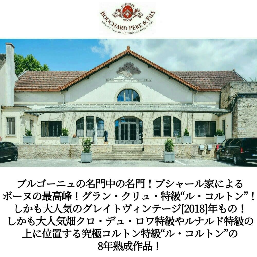 他の画像を見る ル コルトン グラン クリュ 特級 2018 ドメーヌ ブシャール ペール エ フィス元詰 正規代理店輸入品 8年熟成作品 超底上げ重厚ボトル 正規品Le Corton Grand Cru 2018 Domaine Bouchard Pere & Fils 赤ワイン フランス フルボディ 辛口 当店特別価格 ¥ 20,710 税込 カートに入れる お気に入りに登録する