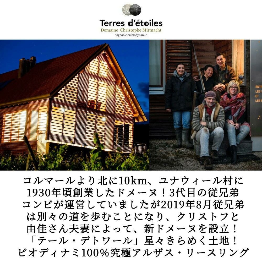 他の画像を見る アルザス リースリング 2023年 蔵出し限定品 テール デトワール(クリストフ ミットナット)元詰Alsace Riesling 2023 Terres d'etoiles (Christophe Mittnacht) BIO 白ワイン フランス 辛口 自然派 当店特別価格 ¥ 3,762 税込 カートに入れる お気に入りに登録する
