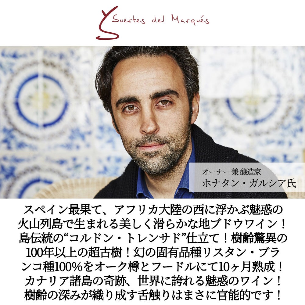 他の画像を見る トレンサード 2024 スエルテス デル マルケス元詰 D.O.バリェ デ ラ オロタバ 火山列島カナリアの幻の固有品種リスタン ブランコ種100% 白 辛口 スペインTrenzado 2024 Las Suertes del Marques 白ワイン スペイン 辛口 当店特別価格 ¥ 5,413 税込 カートに入れる お気に入りに登録する