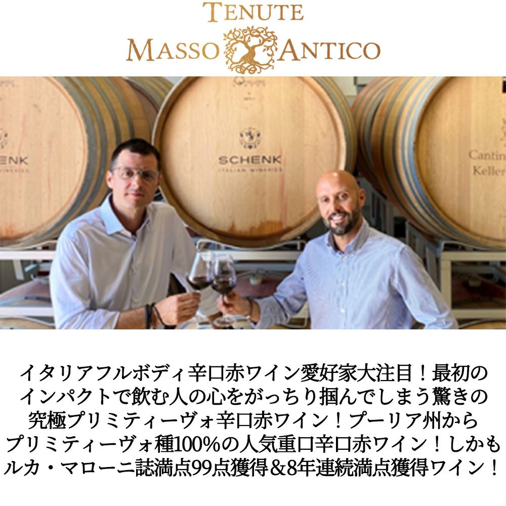 他の画像を見る マッソ アンティコ プリミティーヴォ サレント 2024 テヌータ マッソ アンティコ LM誌満点99点獲得&10年連続満点獲得!Masso Antico Primitivo Salento 2024 tenute Masso Antico 赤ワイン イタリア フルボディ 辛口 当店特別価格 ¥ 1,470 税込 カートに入れる お気に入りに登録する