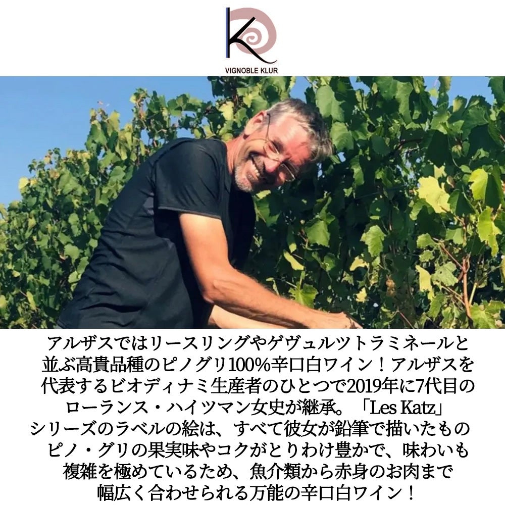 他の画像を見る アルザス ピノ グリ レ カッツ ラ レーヌ 2022 蔵出し作品 ドメーヌ レオン ハイツマン家元詰 自然派Alsace Les Katz La Reine Pinot Gris 2022 Domaine Leon Heitzmann 白ワイン フランス 辛口 自然派 当店特別価格 ¥ 3,678 税込 カートに入れる お気に入りに登録する