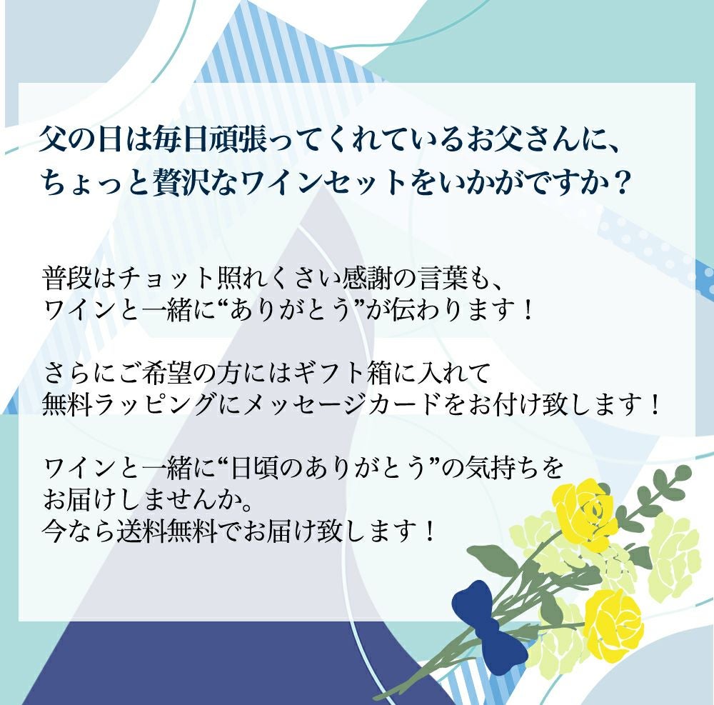 他の画像を見る 【送料無料】優しいお父さんに贈るマイルド辛口赤ワイン2本セット( 父の日 ワインセット ワイン セット 飲み比べワイン ギフト ) 赤ワイン ワインセット フルボディ 辛口 送料無料 当店特別価格 ¥ 10,450 税込 カートに入れる お気に入りに登録する