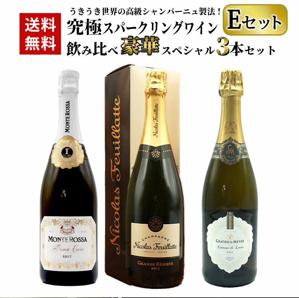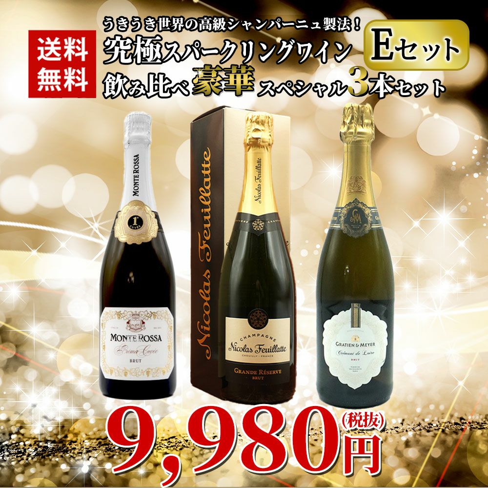 他の画像を見る 【送料無料】うきうき世界の高級シャンパーニュ製法!究極スパークリングワイン飲み比べ豪華スペシャル3本セット EセットUKIUKI Special Sparkling Wine Set【E set】 スパークリング ワインセット フランス イタリア 送料無料 当店特別価格 ¥ 10,429 税込 カートに入れる お気に入りに登録する