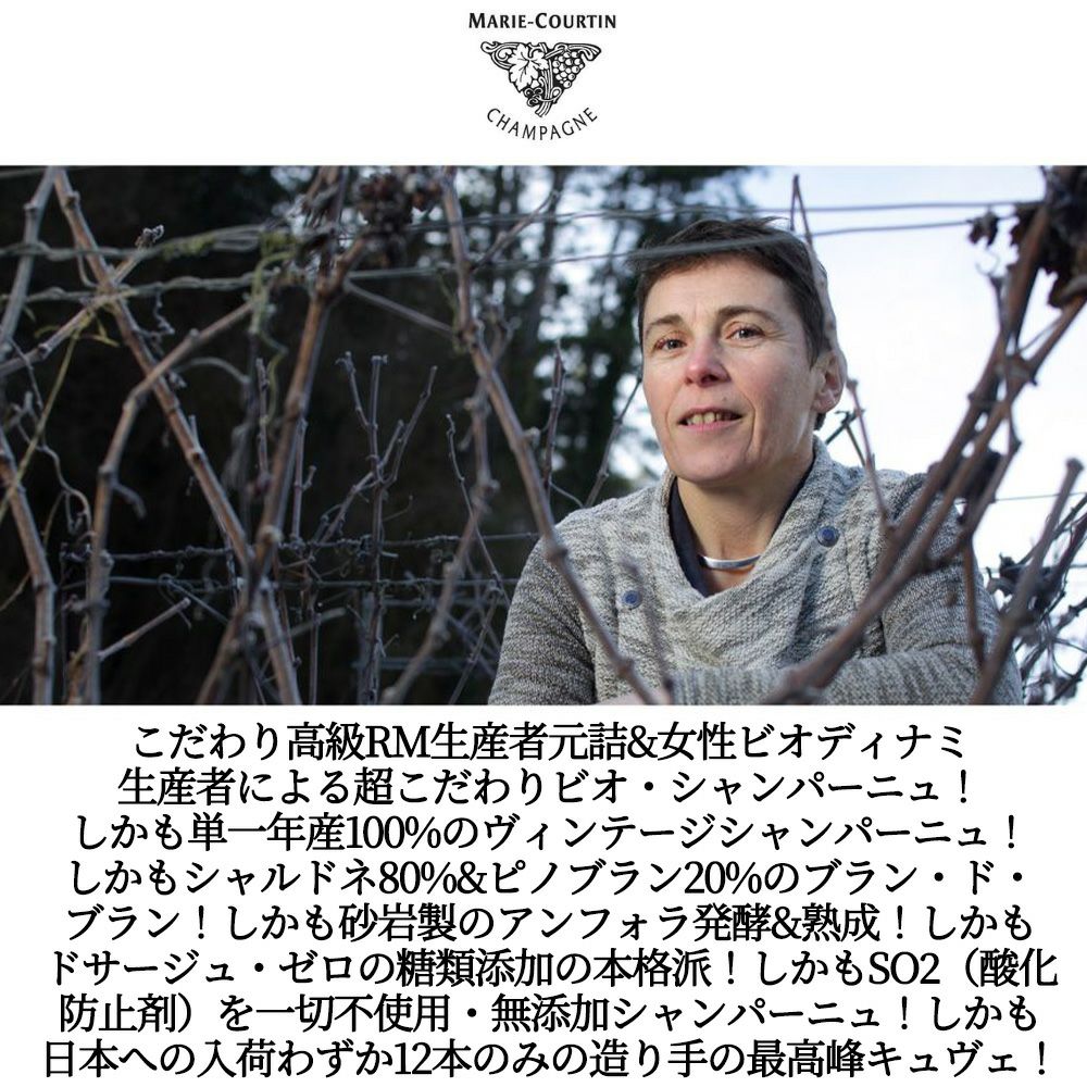 他の画像を見る マリー クルタン シャンパーニュ マニガンス ブラン ド ブラン エクストラ ブリュット ミレジメ 2020 蔵出し作品 RM (生産者元詰) 自然派Marie Courtin Champagne Manigance Extra Brut スパークリング シャンパン フランス 辛口 自然派 当店特別価格 ¥ 28,448 税込 カートに入れる お気に入りに登録する