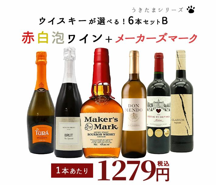 他の画像を見る ワインセット 送料無料 うきたまシリーズ 赤ワイン 白ワイン スパークリングワイン + メーカーズマーク レッドトップ が入ったゴールデンハッピー6本セットB ( ワイン ウイスキー セット ギフト プレゼント ) 赤ワイン 白ワイン スパークリング ワインセット ウイスキー 送料無料 当店特別価格 ¥ 7,294 税込 カートに入れる お気に入りに登録する
