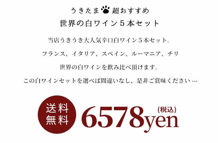 他の画像を見る 【送料無料】うきたまシリーズ 超おすすめ世界の白ワイン5本セット (白ワイン ワインセット)TAMATEBAKO white wine 5 botlles set 白ワイン 送料無料 当店特別価格 ¥ 6,249 税込 カートに入れる お気に入りに登録する