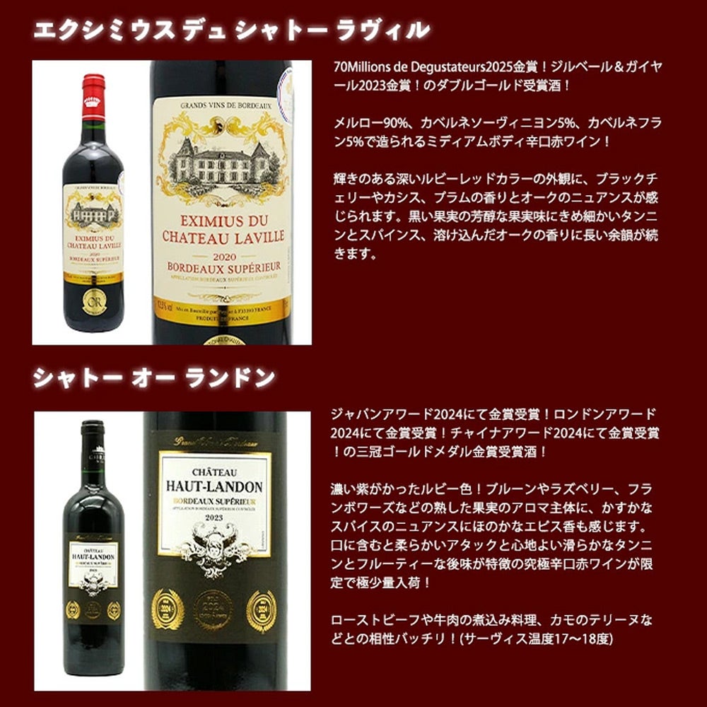 他の画像を見る 【送料無料】うきうき高級ボルドー人気急上昇地域!厳選 豪華金賞受賞酒 究極赤ワイン飲み比べ6本セット SSspecial03mar13_food ワインセット 赤ワイン ワインセット フランス 送料無料 当店特別価格 ¥ 7,294 税込 カートに入れる お気に入りに登録する