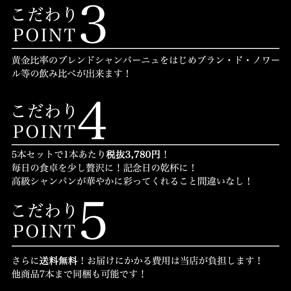 他の画像を見る 【送料無料】うきうき厳選!高級辛口シャンパーニュ究極飲み比べ豪華スペシャル5本セット ワインセットUKIUKI Champagne Special 5 Set シャンパン ワインセット フランス 送料無料 当店特別価格 ¥ 19,750 税込 カートに入れる お気に入りに登録する
