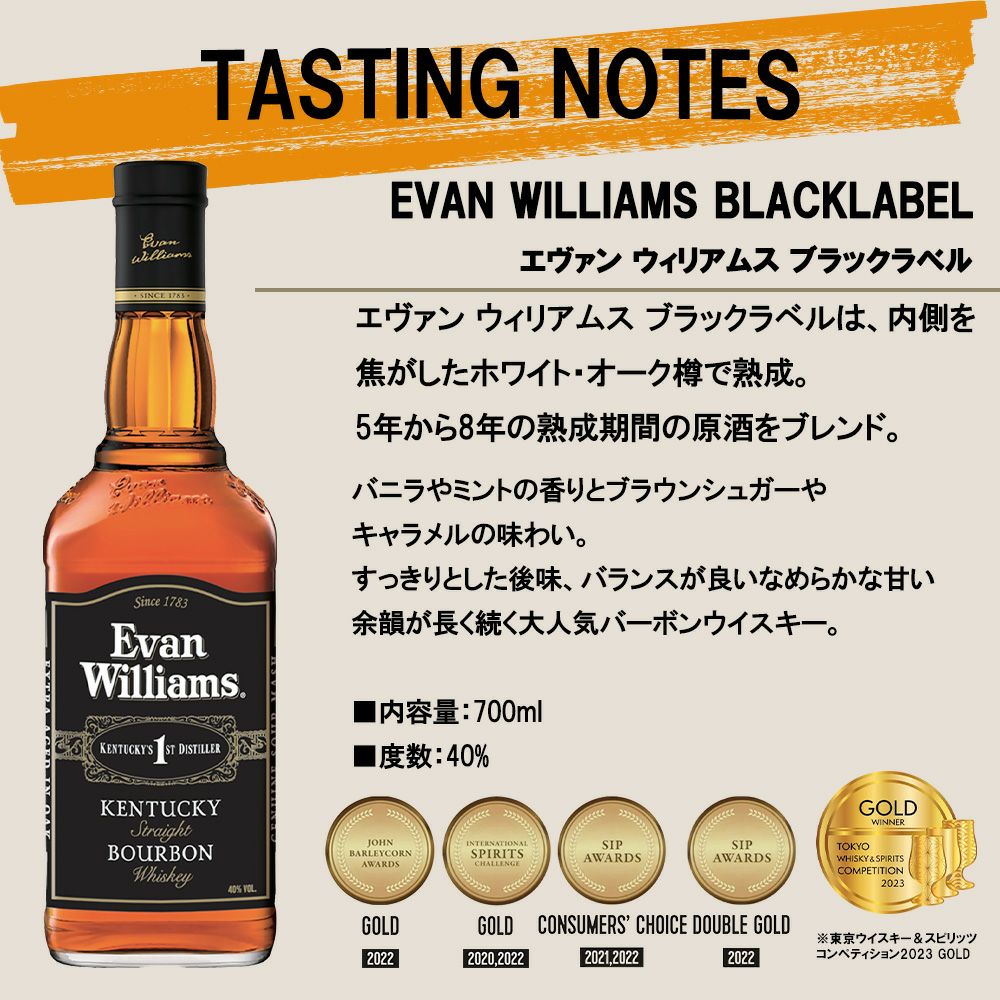 他の画像を見る 【正規品】エヴァン ウィリアムス ブラックラベル ケンタッキー ストレート バーボン ウイスキー 700ml 40%EVAN WILLIAMS BLACKLABEL KENTUCKY STRAIGHT BOURBON WHISKY 700ml ウイスキー アメリカ 当店特別価格 ¥ 1,339 税込 カートに入れる お気に入りに登録する