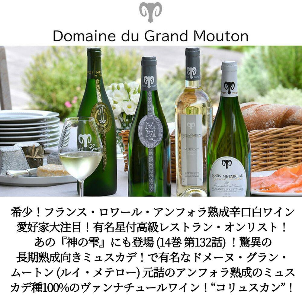他の画像を見る ミュスカデ セーヴル エ メーヌ コリュスカン(アンフォラ) 2022 蔵出し限定作品 ドメーヌ グラン ムートン(ルイ メテロー家)元詰 正規品Muscadet Sevre et Maine Coruscans (amphora) 2022 白ワイン フランス 辛口 当店特別価格 ¥ 4,358 税込 カートに入れる お気に入りに登録する