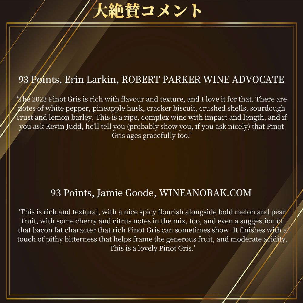 他の画像を見る グレイワッキ ピノ グリ 2023 蔵出し作品 オーナー ケヴィン ジュッド 14% ワインアドヴォケイト誌驚異93点Greywacke PINOT GRIS 2023 New Zealand Marlborough (Kevin Judd) 白ワイン ニュージーランド 辛口 当店特別価格 ¥ 3,779 税込 カートに入れる お気に入りに登録する