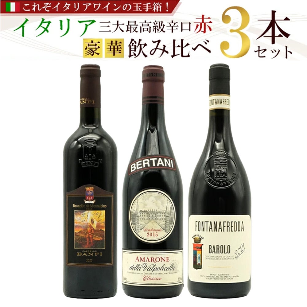 他の画像を見る 【送料無料】これぞイタリアワインの玉手箱!イタリア三大最高級辛口赤ワイン豪華飲み比べ3本セット!名門ワイナリー探訪スペシャル セット ワインセットItalia Special 3 set (Barolo&Amarone&Brunello) 赤ワイン ワインセット イタリア 送料無料 当店特別価格 ¥ 30,284 税込 カートに入れる お気に入りに登録する