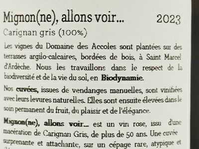 他の画像を見る ミニョン (ミニョンヌ) アロン ヴォワー 2023 蔵出し品 ドメーヌ デ ザコル元詰 自然派ビオ 正規品MIGNON (NE) , Allon voir... 2023 Domaine des Accoles ロゼ フランス 辛口 自然派 当店特別価格 ¥ 5,434 税込 カートに入れる お気に入りに登録する