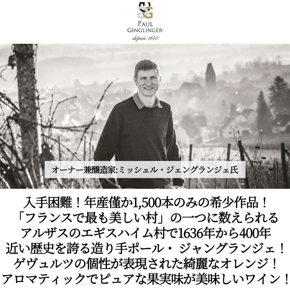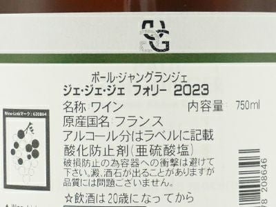 他の画像を見る ジェ ジェ ジェ フォリー 2023 ドメーヌ ポール ジャングランジェ元詰 AOCアルザス ゲヴュルツトラミネール ビオロジック度数12.5%Alsace GGG Folies Gewurtztraminer 2023 Paul オレンジ フランス 辛口 自然派 当店特別価格 ¥ 3,490 税込 カートに入れる お気に入りに登録する
