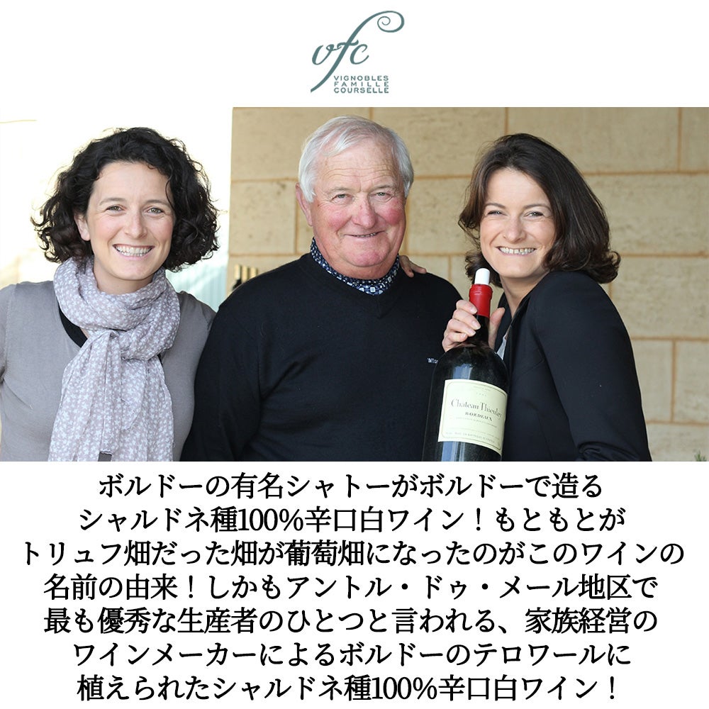 他の画像を見る レ トリュフィエール ド テューレイ シャルドネ 2019 シャトー テューレイ元詰(ヴィニョーブル クルセル) シャルドネ種100%Les Truffieres Thieuley Chardonnay 2019 Chateau Thieuley 白ワイン フランス 辛口 当店特別価格 ¥ 1,892 税込 カートに入れる お気に入りに登録する