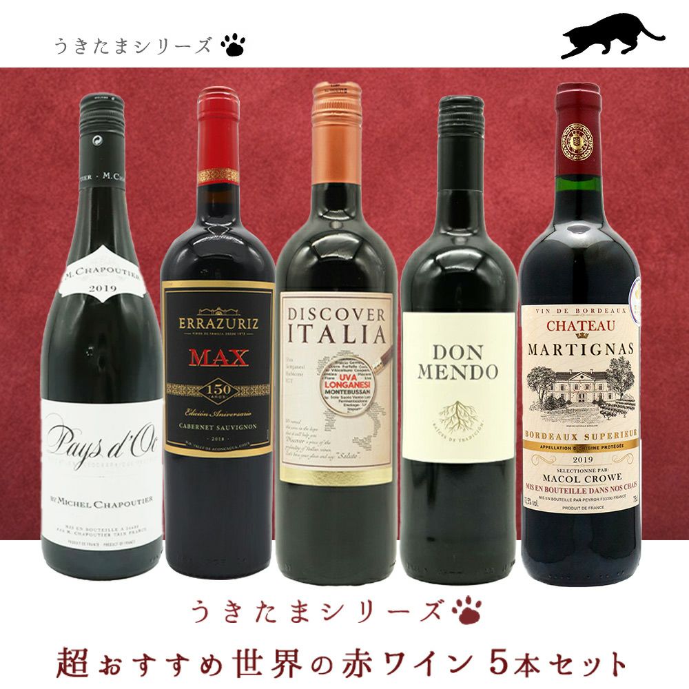 他の画像を見る 【送料無料】うきたまシリーズ 超おすすめ世界の赤ワイン5本セット (追加7本まで同梱可 送料無料) ワインセット 赤ワイン フルボディ ミディアムボディ 辛口 送料無料 当店特別価格 ¥ 7,560 税込 カートに入れる お気に入りに登録する