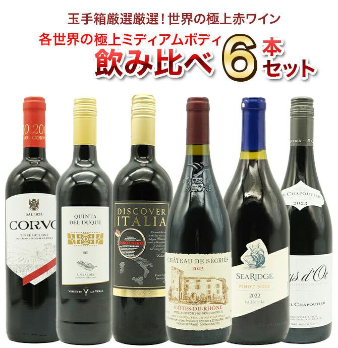 他の画像を見る 【送料無料】玉手箱厳選 各世界の極上ミディアムボディ飲み比べ赤ワイン6本セット ワインセット 赤ワイン ワインセット ミディアムボディ 送料無料 当店特別価格 ¥ 5,204 税込 カートに入れる お気に入りに登録する