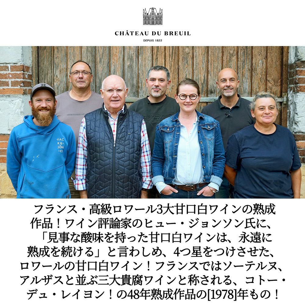 他の画像を見る コトー デュ レイヨン ヴィエイユ ヴィーニュ 1978 至高の古酒コレクション 蔵出し限定秘蔵品 シャトー デュ ブルイユ元詰Coteaux du Layon Vieille Vigne 1978 Chateau du Breuil 白ワイン フランス 甘口 当店特別価格 ¥ 9,864 税込 カートに入れる お気に入りに登録する