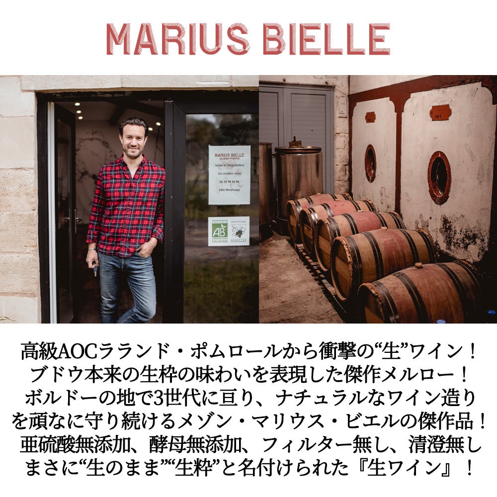 他の画像を見る メゾン マリウス ビエル ブリュット 2022 高級メルロ100% 亜硫酸 酵母無添加 ヴァン メトド ナチュール認証 AOCラランド ポムロールMaison Marius Bielle BRUT 2022 AOC Lalande Pomerol 赤ワイン フランス フルボディ 辛口 自然派 当店特別価格 ¥ 3,646 税込 カートに入れる お気に入りに登録する